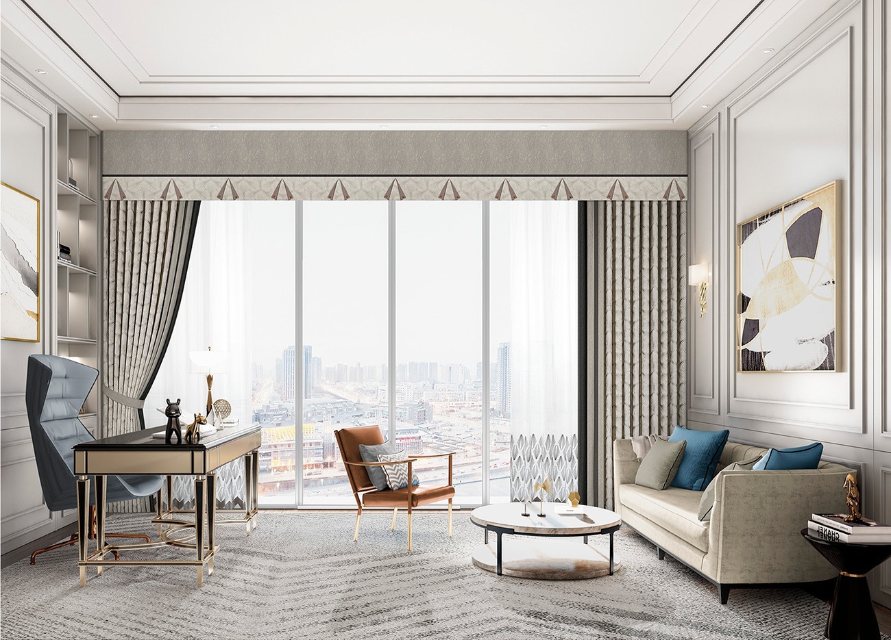 溫潤的象牙色與內(nèi)斂的紋理交織出紳士的不凡格調(diào),空間質(zhì)感自顯。